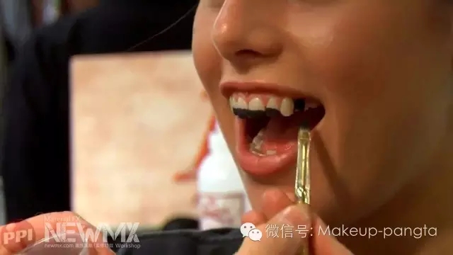 用(yòng)黑(hēi)色牙水(shuǐ)刷在牙縫